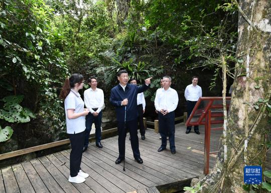 11日下午,习近平到海南岛中南部的五指山市考察调研。海南热带雨林国家公园是我国首批5个国家公园之一。习近平深入五指山片区,沿木栈道步行察看公园生态环境,不时停下脚步,询问树木生长、水源涵养、动植物资源保护等情况。他指出,海南要坚持生态立省不动摇,把生态文明建设作为重中之重,对热带雨林实行严格保护,实现生态保护、绿色发展、民生改善相统一,向世界展示中国国家公园建设和生物多样性保护的丰硕成果。