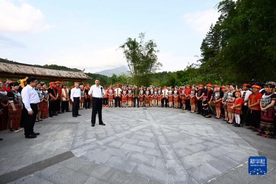 4月10日至13日,中共中央总书记、国家主席、中央军委主席习近平在海南考察。这是11日下午,习近平在五指山市水满乡毛纳村同村民们亲切交流。新华社记者 谢环驰 摄