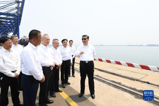 4月10日至13日,中共中央总书记、国家主席、中央军委主席习近平在海南考察。这是12日上午,习近平在洋浦经济开发区考察。新华社记者 李学仁 摄