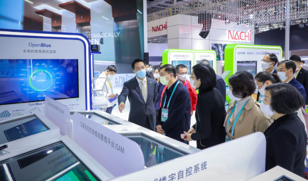 江森自控展示基于OpenBlue数字化平台的解决方案,OpenBlue 可谓“建筑大脑”,通过集合定制化、嵌入式的人工智能功能(如远程诊断、预测性维护、合规监控、风险评估等),OpenBlue涵盖了一整套全面的智慧建筑互联解决方案与服务,可应用于工作场所、学校、医院、校园等场景。