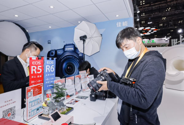 佳能展示全球首款支持8K视频拍摄的全画幅专微相机EOS R5,这款产品自发布后赢得市场空前反响,供不应求。