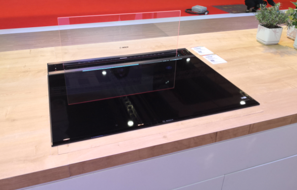 博西家用电器旗下品牌博世家电展示了全球线下首秀主打产品——升降式吸油烟机,其利用创新的风导技术,结合透明玻璃幕墙形成隔烟风幕,可使烟雾顺势下吸,真正做到油烟“去无踪”。