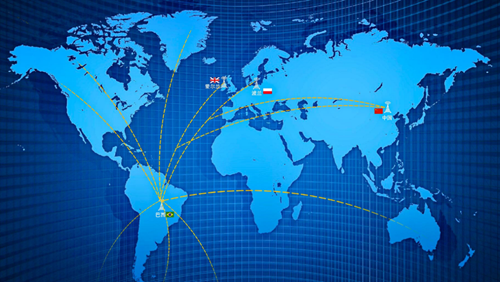图1 科普研学基地接收南美洲短波电台全球通联电波传播情况示意图
